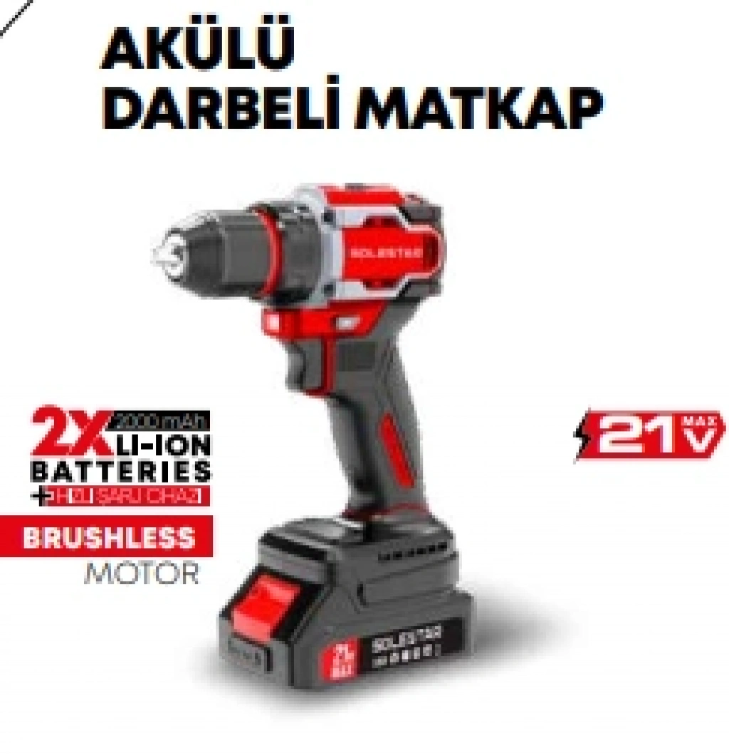 Akülü Darbeli Matkap 13MM - 21V - 65N.m - 2X2000MAH BATARYA+1 ŞARJ STR-1933