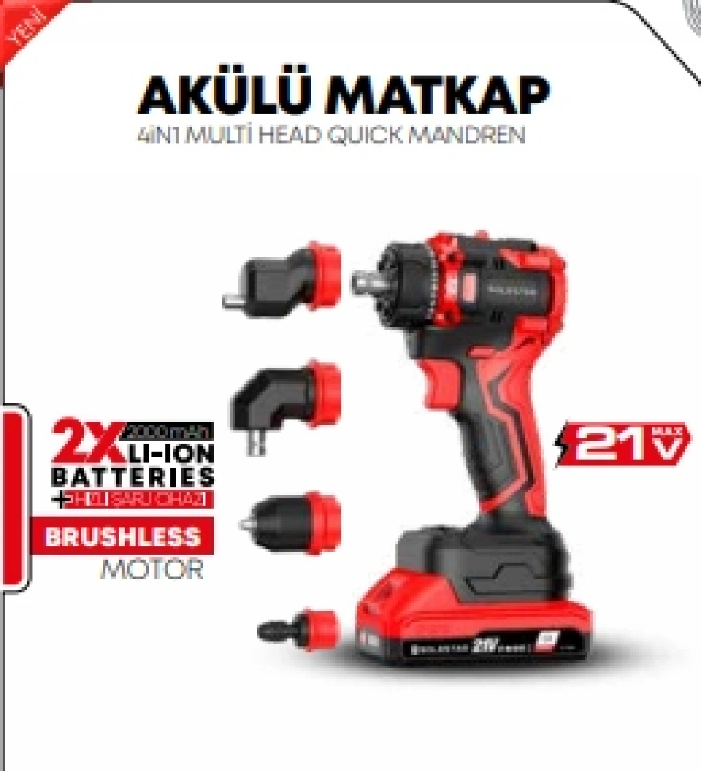 Akülü Matkap 4 Başlıklı 13MM 160 N.m 21V 2*4000MAH BATARYA+1HIZLI ŞARJ STR-1967