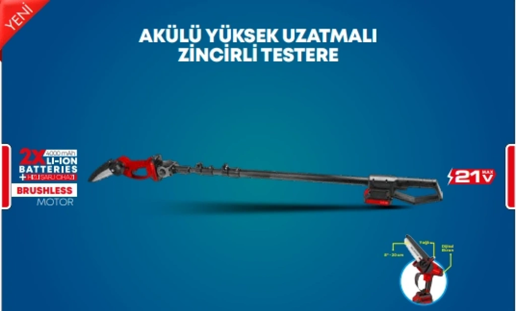 Akülü Yüksek Uzatmalı Zincirli Testere 2.5M - 2X4000MAH BATARYA+1ŞARJ STR-1930