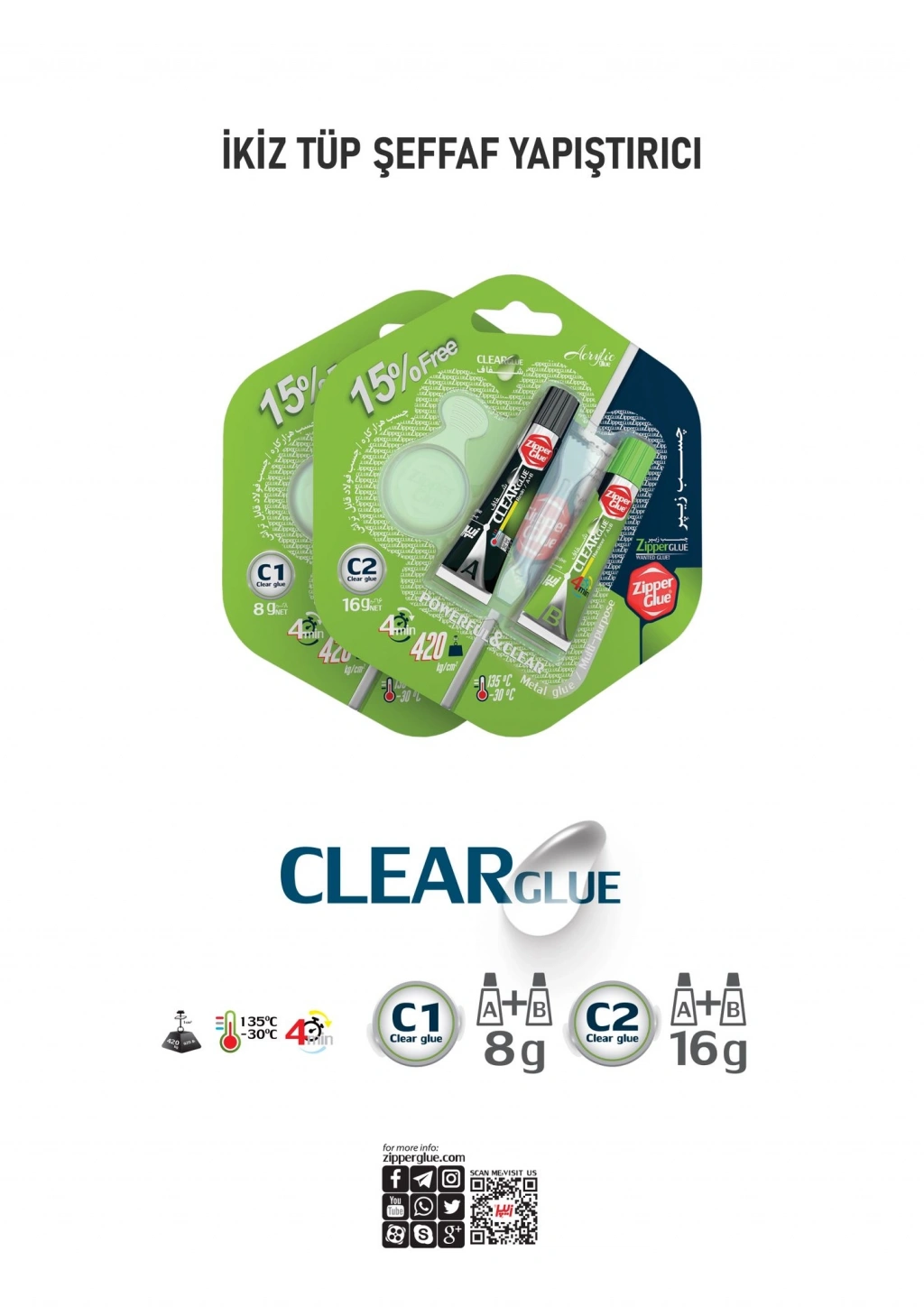 16GR Yapıştırıcı İran Çift Karışım Şeffaf C2